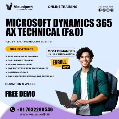 Visualpath offers the Best MicroSoft Dynamics Ax Training in India- Join Now with real-time implementation skills and Daily Recorded Sessions for Reference. Accessible globally including USA, UK, Cana...