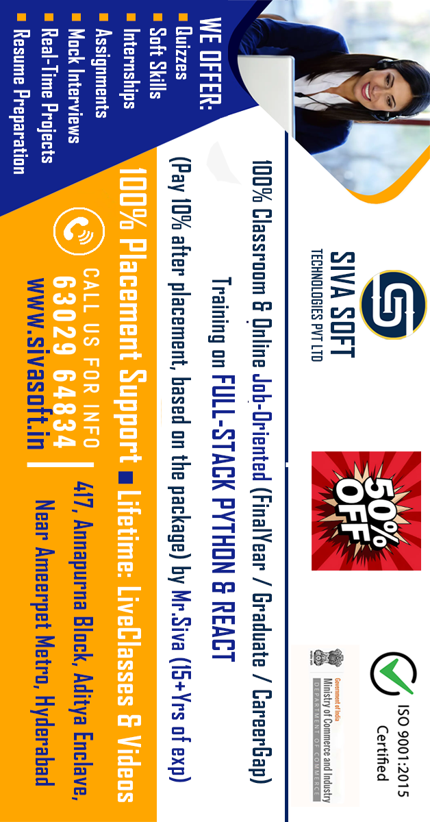 Full Stack Python React Training | Classroom & Onlineπ For More Details, Visit: https://www.sivasoft.in/online-python-django-training-course.htmlπ¨βπ« Expert Trainers (120+ Batches Comple...