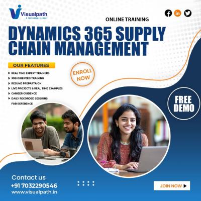 Visualpath offers Microsoft Dynamics 365 Supply Chain Management to help you master end-to-end supply chain processes. Available globally, including USA, UK, Canada, Dubai, and Australia. Boost your ...