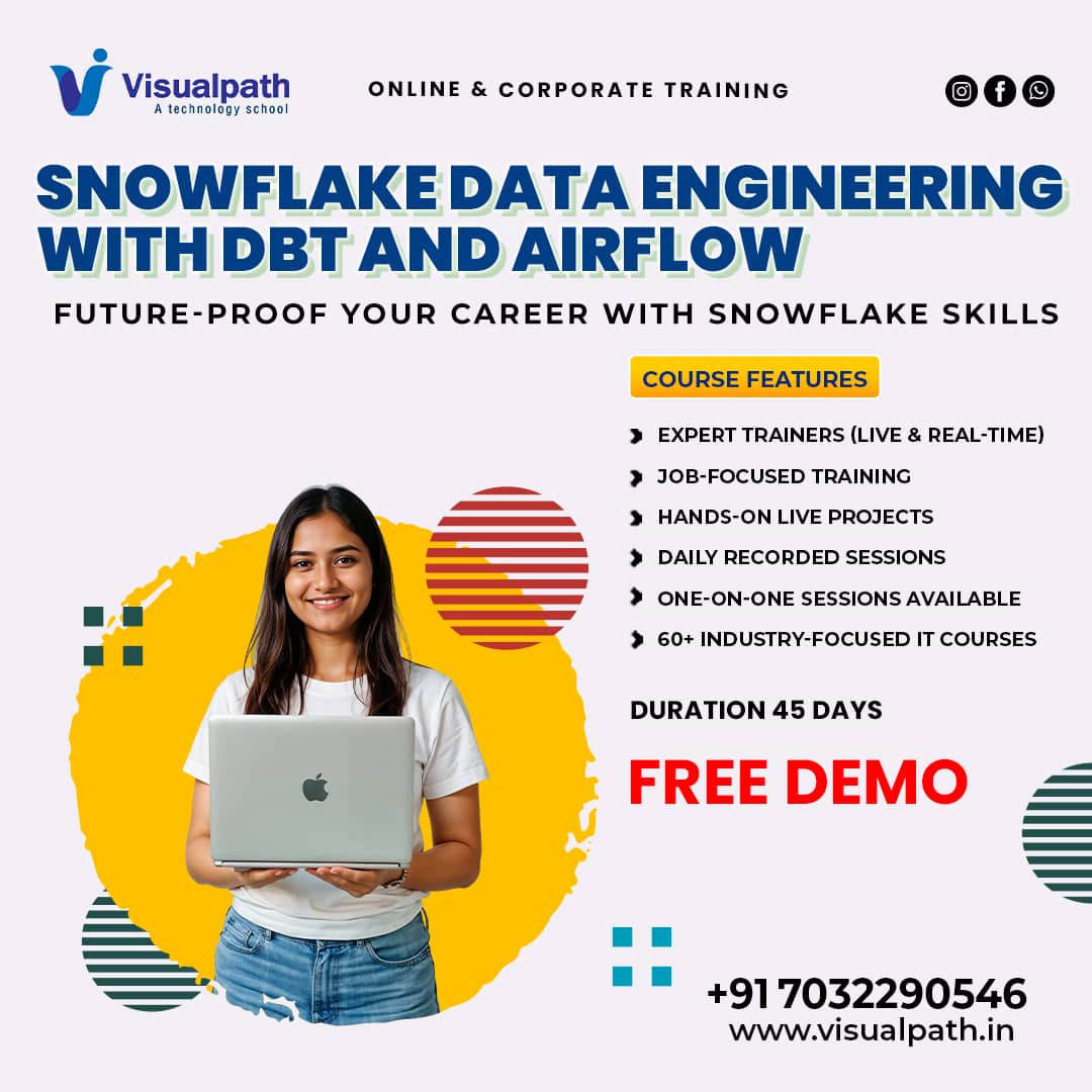 Enhance your data engineering skills with Snowflake Data Engineering with DBT and Airflow Training at Visualpath. Learn Snowflake architecture, DBT modeling, and Airflow automation through real-time...