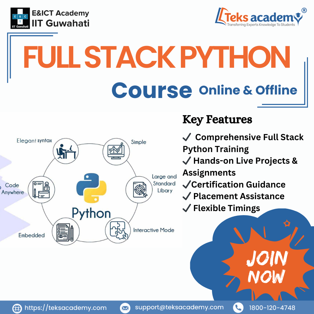 (Hyderabad)  - Community / Events, Classes Ready to become a job-ready Full Stack Python Developer in Hyderabad? TEKS Academy offers a comprehensive training program with a unique advantage: an advanced certification from the E&ICT Academy...