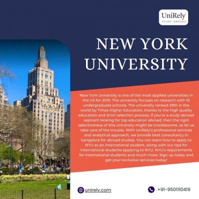 New York University is one of the most applied universities in the US for 2019. The university focuses on research with 10 undergraduate schools. The university ranked 29th in the world by Times Highe...