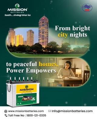 Mission Batteries is a reliable Battery Manufacturer in Rajasthan, delivering high-performance automotive, inverter, solar, and lithium batteries backed by advanced technology and strict quality stand...