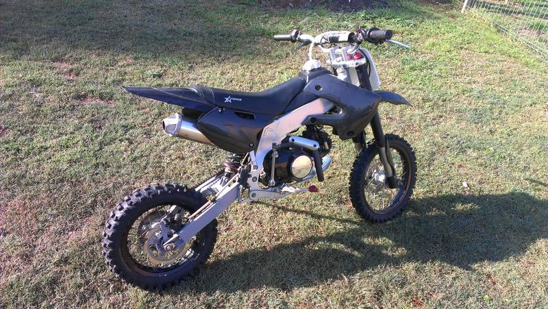 125 4 stroke dirt bike. Sports exhaust, braided lines, caulieflower disk