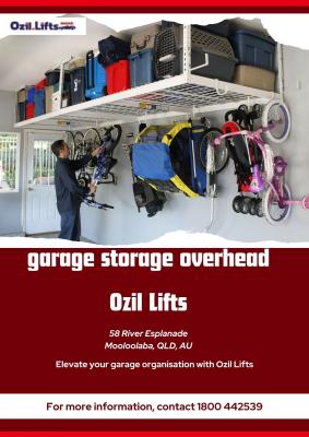 (Mooloolaba) Maximize the space in your garage with Ozil Lifts' overhead garage storage solutions. These motorized storage systems are designed to lift and store large items efficiently and safely and free up f...