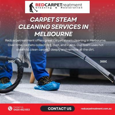 Redcarpetreatment offers great carpet steam cleaning in Melbourne. Over time, carpets collect dirt, dust, and stains. Our team uses hot steam to clean carpets deeply and remove all the dirt. It helps ...