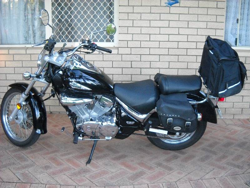 serviced with receipt. Low km's. Has 2 side pannier bags, back