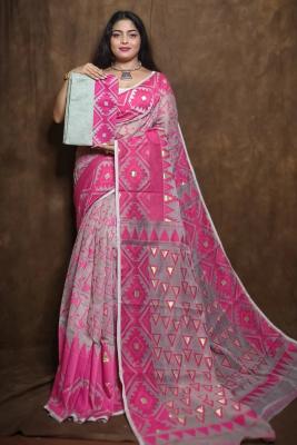 Elegant Dark Pink Zari Cotton Jamdani Saree