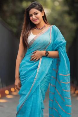 Elegant Sky Blue Handloom Linen Saree