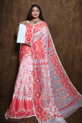 Handloom Dhakai Jamdani White Saree
