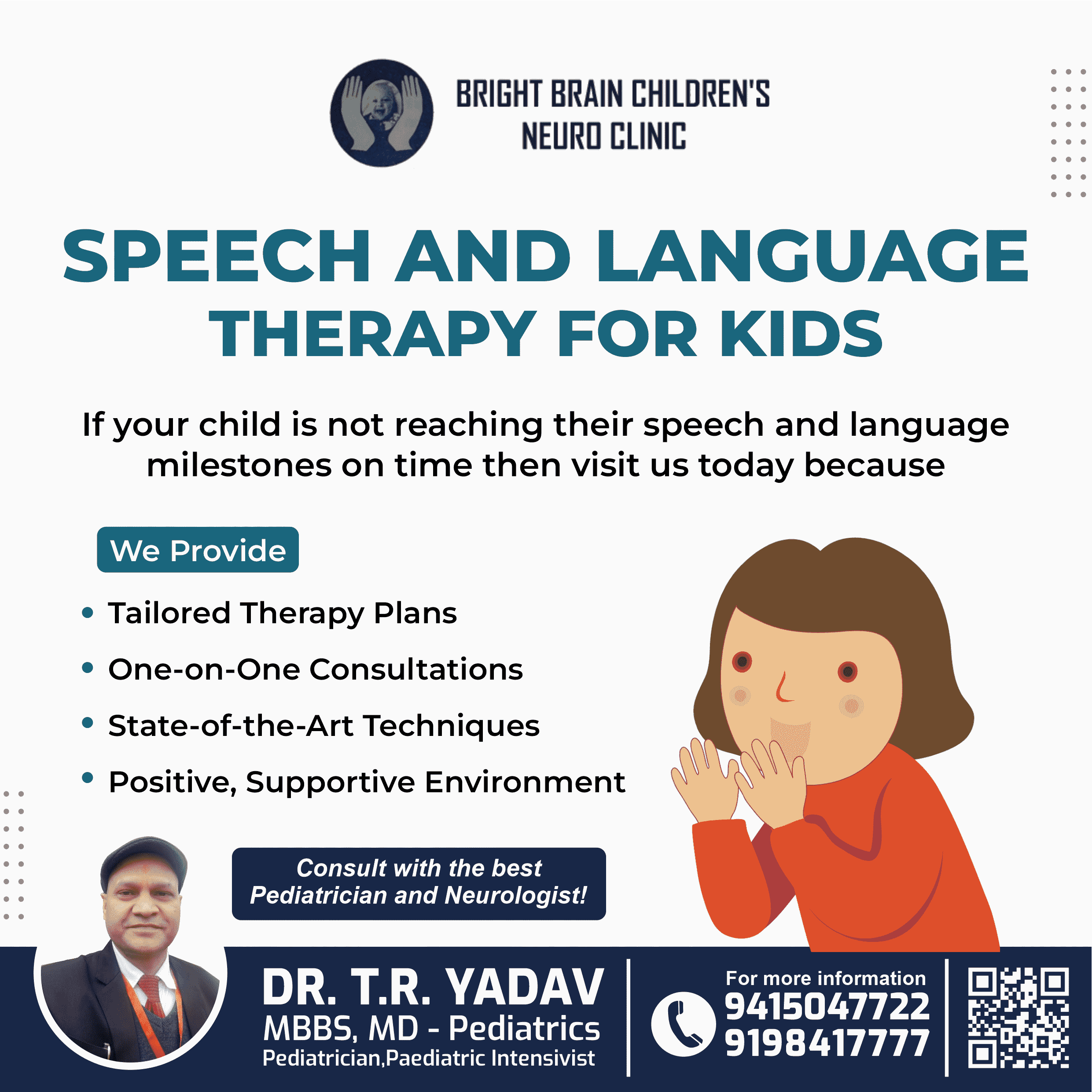If your child is facing delays in speech or language development, it’s important to address these concerns early. At Bright Brain Children's Neuro Clinic, we offer tailored therapy plans and one-o...