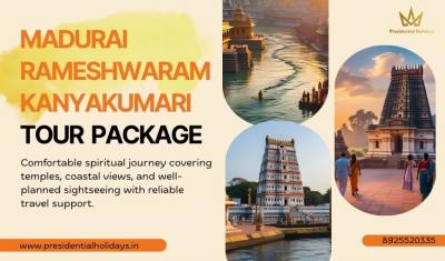 Explore the spiritual heart and scenic beauty of South Tamil Nadu with the Madurai-Rameshwaram-Kanyakumari tour package by Presidential Holidays. This thoughtfully planned journey brings together anci...