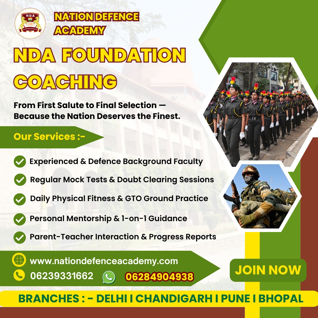 Nation Defence Academy offers expert Military School Coaching in Pune to help students excel in entrance exams with discipline, confidence, and strong academics.Key Highlights:Expert faculty with defe...