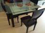 Rarely used.It is dining table of dark coffee color.. It has 6 chairs.. Top of dining table is the glass. Glass is also very thick.. Under the dining table there also glass to put th...