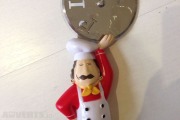 It's in the shape of a teddy bear with a chefs hat & apron holding some vegetables.