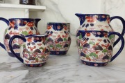 5 antique looking jugs ranging in different sizes. Would look well in any kitchen. Sold as a set