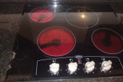 Black electric ceramic hob, damaged on one side but in perfect working order.