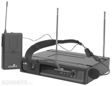 Special PriceNew Chord UN1 Neckband Microphone SystemUHF Wireless 171839Upto 60m range 864.1 MHzThis system features a beltpack transmitter and neckback microphone for hands free operation.Base statio...