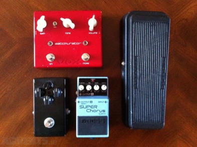 Vox Satchurator -80Boss Ch 1 chorus -SOLDBYOC Wah -80Whipple inductor, ICAR pot. Internal trimpots make this wah very versatile.Byoc RAT -50 SOLDBest sounding RAT I've tried has an NOS LM308 chip.