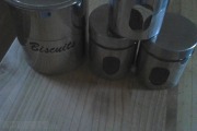 Biscuit barrel & tea,sugar,coffee set